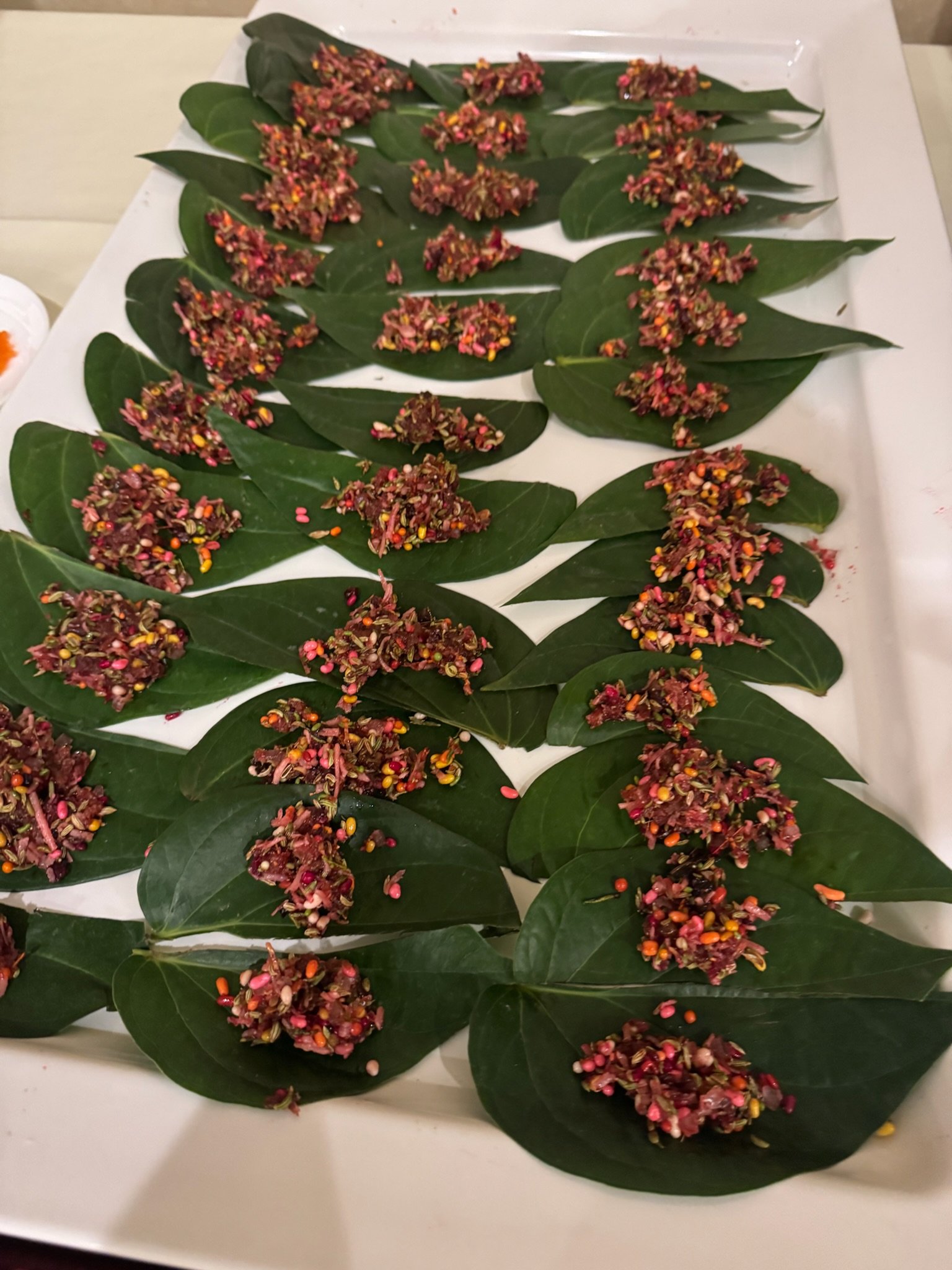 Traditional paan freshly rolled and customized with sweet or minty fillings.